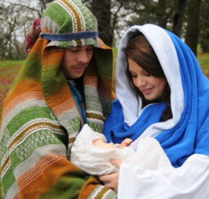 The story of the birth of Jesus Christ is performed outdoors at 701 Mann Av by live actors to a recorded narration from the Bible.